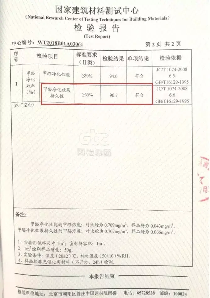 只有出具《产品除醛性能测试》、《产品效果及持续作用年限测试》等专业权威机构的除醛性能测试报告,才可以作为产品高效除醛的佐证。